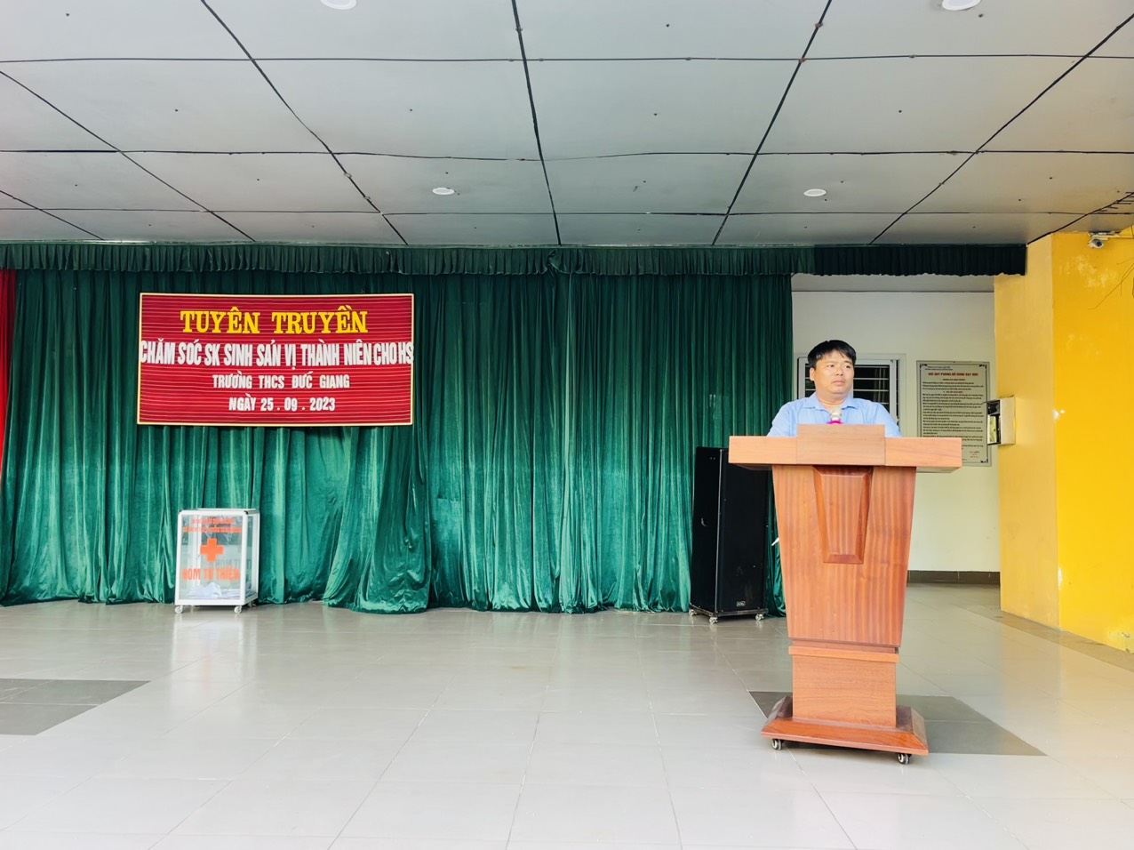 Nhận thấy việc giáo dục ở lứa tuổi vị thành niên - thanh niên là rất cần thiết nhằm giúp các em học sinh phát triển lành mạnh về thể chất và tinh thần, sáng thứ 2 ngày 25/09/2023, với sự có mặt của Ban giám hiệu nhà trường, đồng chí Nguyễn Khắc Thúy - Phó giám đốc Trung tâm Y tế Quận Long Biên, giáo viên chủ nhiệm và toàn thể các em học sinh, trường THCS Đức Giang đã tổ chức buổi sinh hoạt với chuyền đề “ Chăm sóc sức khỏe sinh sản vị thành niên”.