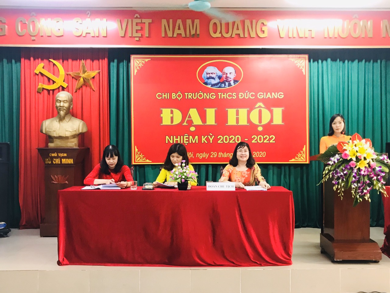 Ngày 29/2/2020, thực hiện Điều lệ Đảng cộng sản Việt Nam; căn cứ Kế hoạch số 162-KH/ĐU ngày 08/8/2019 của đảng ủy phường Đức Giang về tổ chức Đại hội Chi bộ tiến tới Đại hội đại biểu Đảng bộ phường Đức Giang lần thứ XI nhiệm kỳ 2020 – 2025, Chi bộ Trường THCS Đức giang long trọng tổ chức Đại hội chi bộ nhiệm kỳ 2020 - 2022.