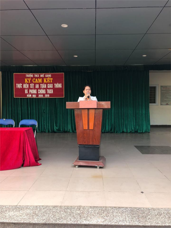 Thực hiện Công văn của Phòng GD&ĐT Quận Long Biên về việc triển khai công ,tác giáo dục ATGT đầu năm học 2017-2018, sáng ngày 15/10/2018, trong Lễ chào cờ đầu tuần, Trường THCS Đức Giang đã tổ chức Phát động tháng An toàn giao thông, phòng chống các tệ nạn xã hội năm 2018. Nhà trường cũng triển khai cho học sinh các khối lớp ký cam kết thực hiện tốt an toàn giao thông, phòng chống tệ nạn xã hội năm học 2018-2019 đối với toàn thể cán bộ, giáo viên, nhân viên và học sinh.